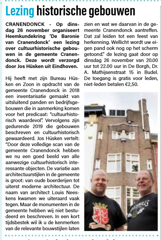 Grenskoerier 20 nov. 2019: Lezing cultuurhistorische gebouwen in Cranendonck